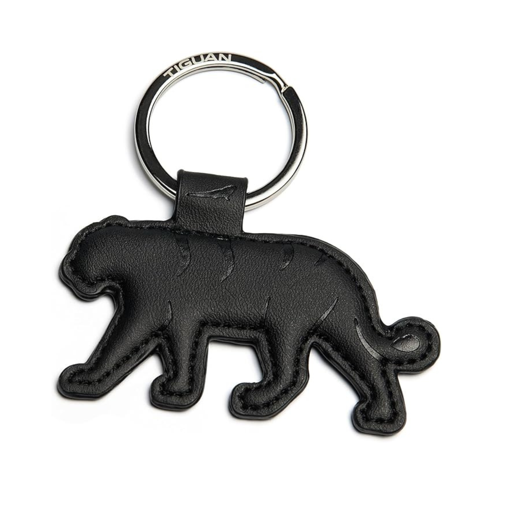 The model name Tiguan is a combination of tiger and iguana, symbolizing the vehicle's strengths. This key ring unites both animals: the shape of a tiger with an embossed iguana.